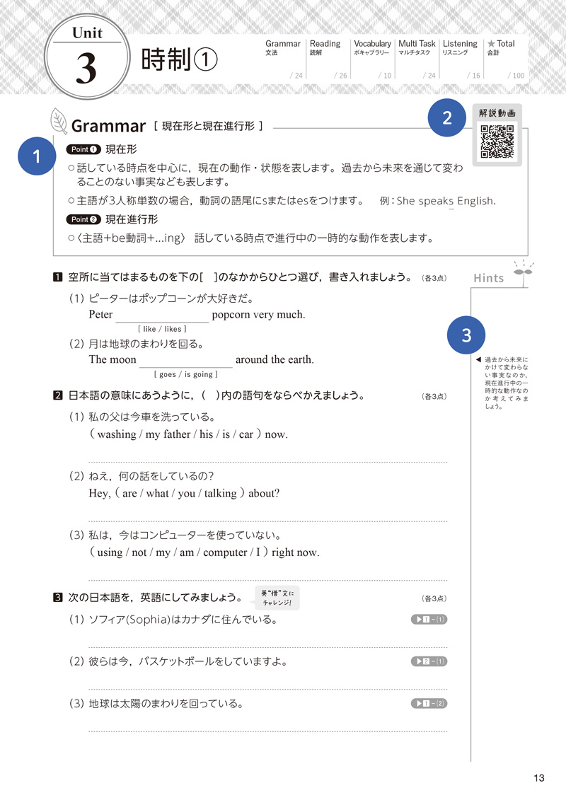 ◎ヒント文法問題はヒント付きで無理なく学習できます。