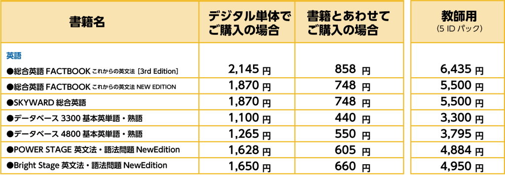 先生がデジタル副教材をご利用の際は、教師用5IDパックをご購入ください。